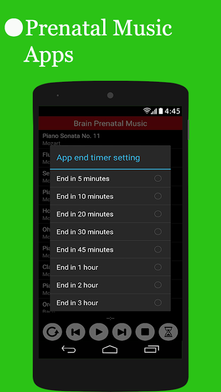 Você pode escolher música pré-natal entre vários gêneros simplesmente tocando o botão play.