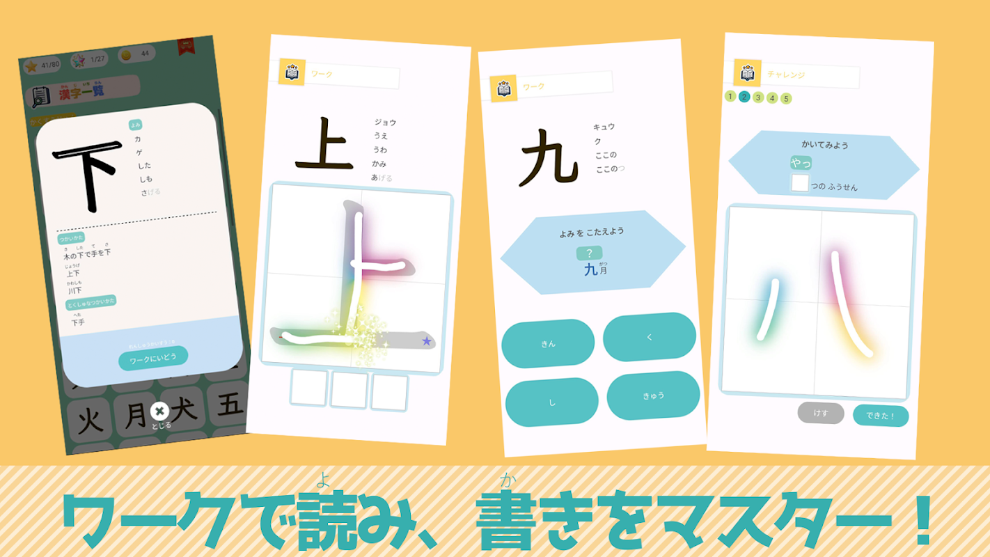 Aprenda kanji elementar por meio de minijogos exclusivos do aplicativo.