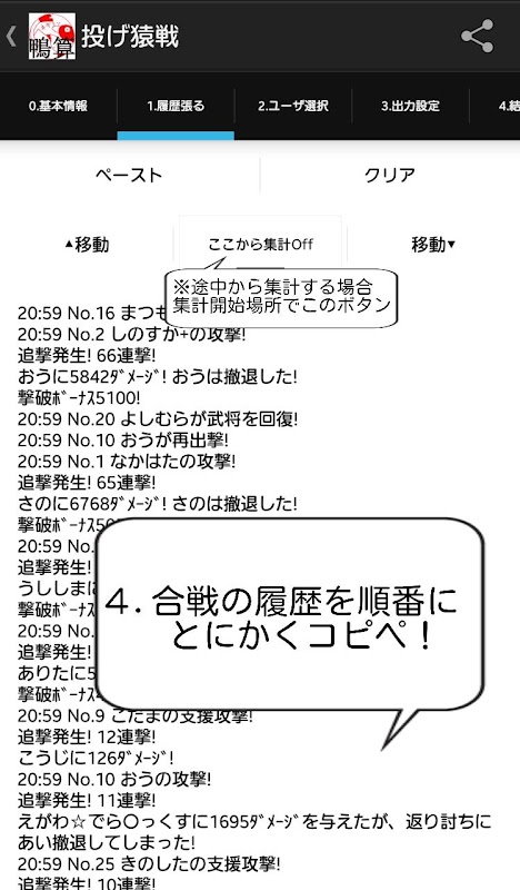 ・入力欄に合戦の履歴ページを「新しい順」にすべて選択して貼り付けてください。