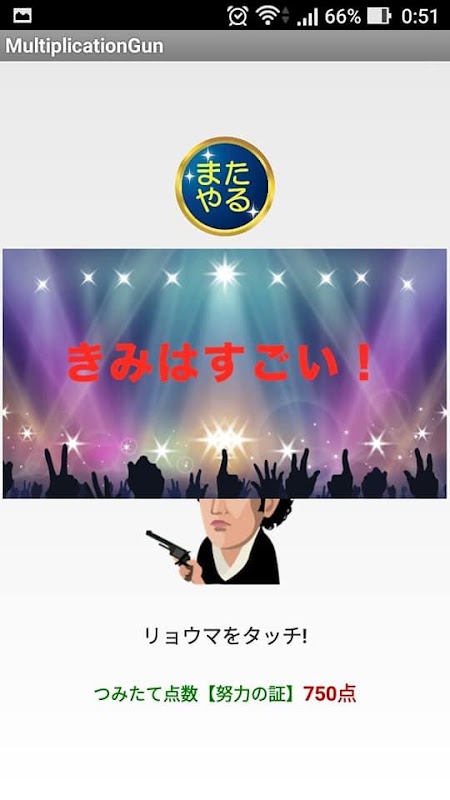 Toque em Ryoma Sakamoto para disparar uma pistola e receber uma mensagem de Ryoma!