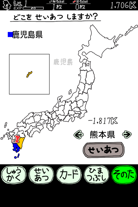 日本全て制圧後、同じ都道府県を何度も制圧出来るようになります。