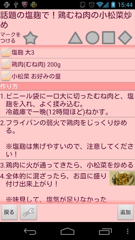 また、レシピには5種類のマークをつける事が出来ますので、
