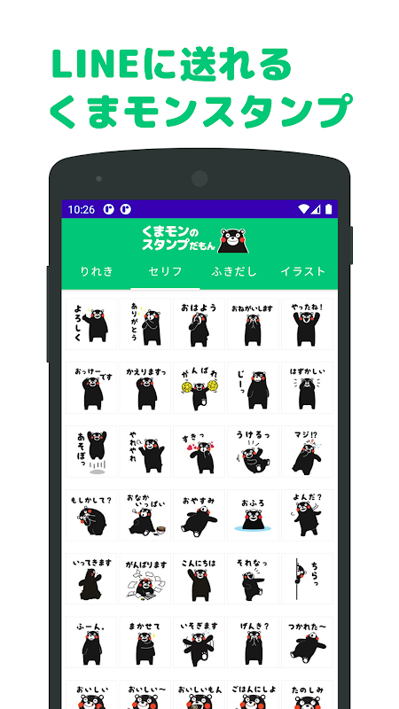 Todos os carimbos "Kumamon" são de uso gratuito.