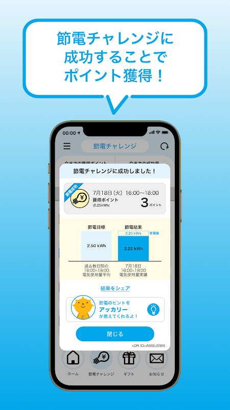 Participe do desafio de economia de energia recrutado pelo aplicativo e ganhe pontos se conseguir economizar energia durante o período de tempo especificado. Os pontos ganhos podem ser trocados por pontos PayPay.