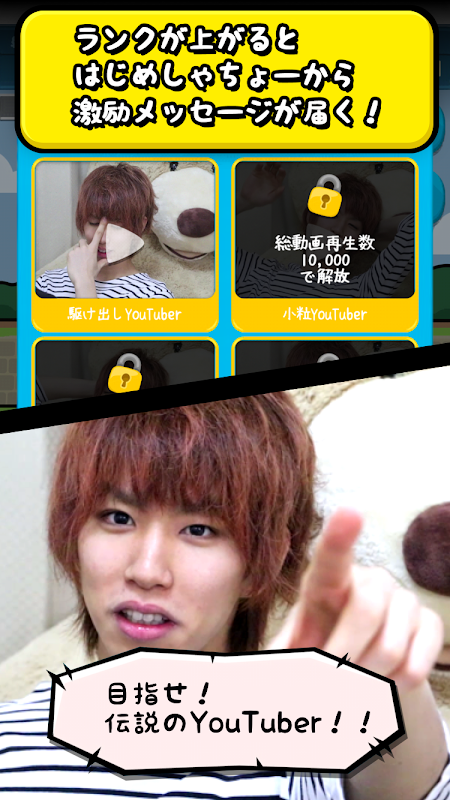 YouTuberとしてのランクがあがるとはじめしゃちょーからの激励メッセージが見れるよ。