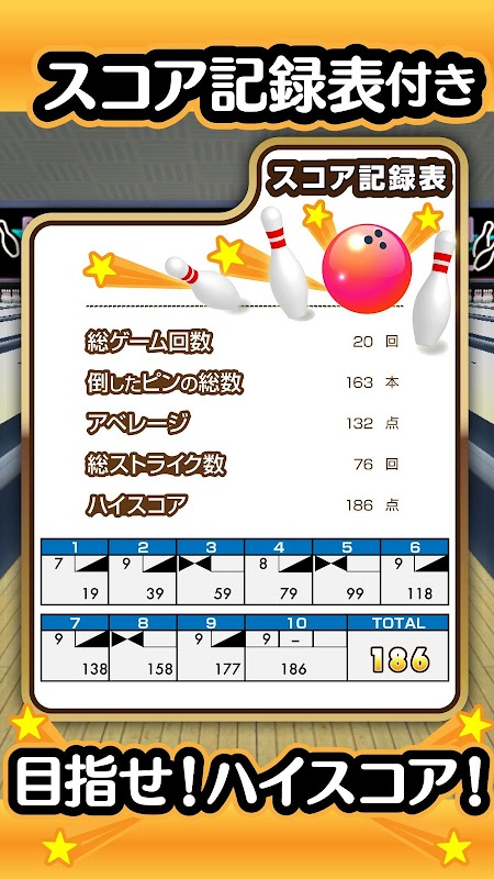 Continuando a atualizar seu próprio recorde, você pode melhorar suas habilidades de boliche.