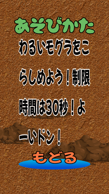 Uma toupeira aparecerá no buraco por 30 segundos após iniciar a contagem regressiva de 3, 2, 1!