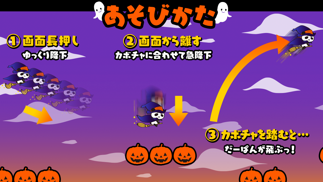 3、そしてカボチャを踏むと、だーぱんが飛んじゃいます!!