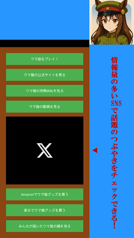 Você também pode ver tweets populares no widget X (antigo Twitter) e pode cobrir todas as informações sobre Uma Musume com este aplicativo.