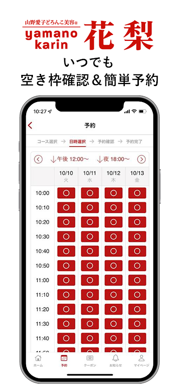 Através do aplicativo, você pode receber as últimas informações e ótimas ofertas do [Aiko Yamano Doronko Beauty Cresty Salon Karin]. Você também pode consultar o cardápio, o horário desejado e fazer reservas pelo smartphone a qualquer momento. Ao instalar o aplicativo, você pode usar o [Yamano Aiko Doronko Beauty Cresty Salon Karin] de forma mais conveniente e fácil.