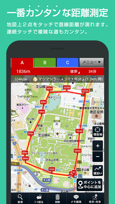 Ou toque no mapa, ou rastreamento. A edição definitiva da aplicação de medição de distância que pode criar livremente uma rota!