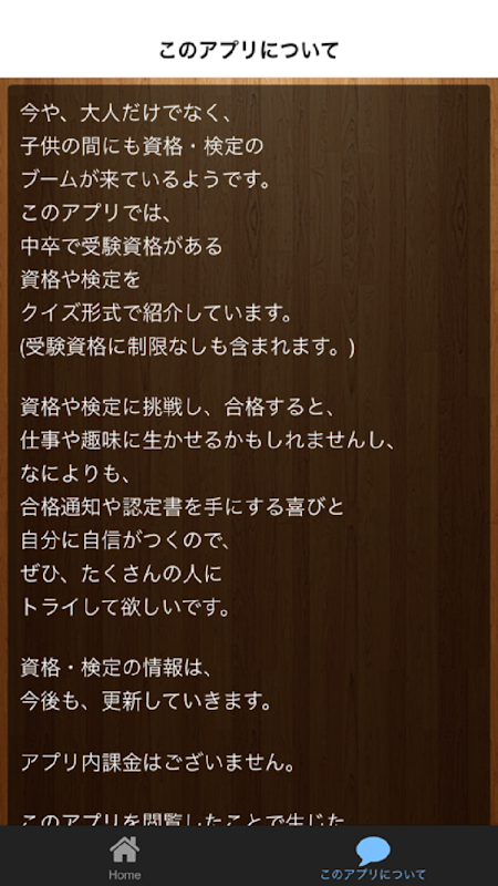 今や、大人だけでなく、子供の間にも資格・検定のブームが来ているようです。このアプリでは、中卒で受験資格がある資格や検定をクイズ形式で紹介しています。
