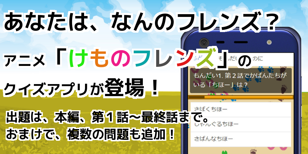 このアプリは2017年のアニメ『けものフレンズ』の非公認・非公式クイズアプリです。(このアプリはアニメ版を元に作成しています)【祝】新作映像の制作決定!
