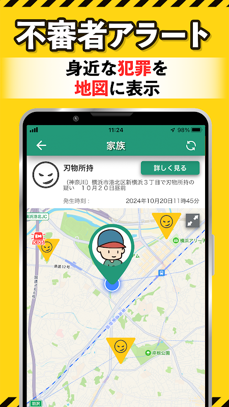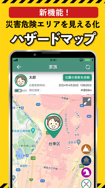 - Conecta-se ao sistema de Alerta Antecipado de Terremotos da Agência Meteorológica do Japão para compartilhar instantaneamente a localização e a segurança da sua família.