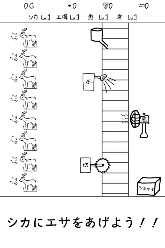 e criando um Shikamago pelo processamento da energia que produz veados, o jogo é para ganhar dinheiro através da criação de um prato de peixe.