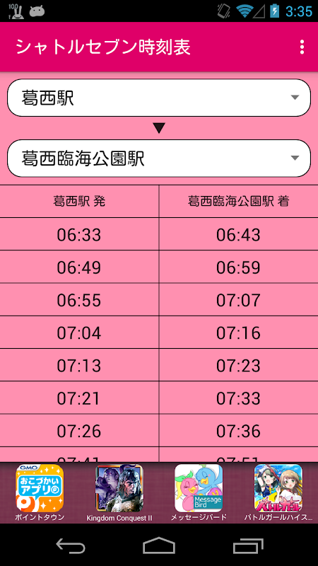 Executando um anel de sete maneiras, Kameari, Koiwa, Kasai, de ônibus expresso que liga a Tokyo Disney Resort, é o calendário de shuttle Sete.