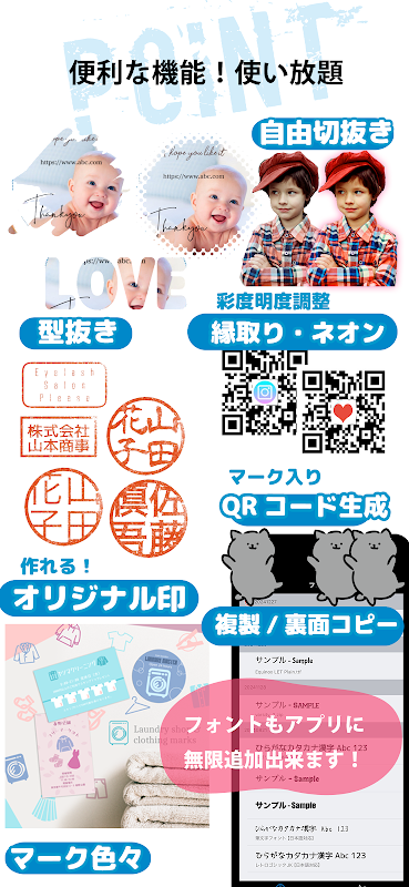 Geração infinita de código QR/Função de adição de fonte infinita/Função conta-gotas de absorção de cores/Função de geração de carimbo/Coloração gradiente/Esvaziamento de fotos/Processamento/Cantos arredondados