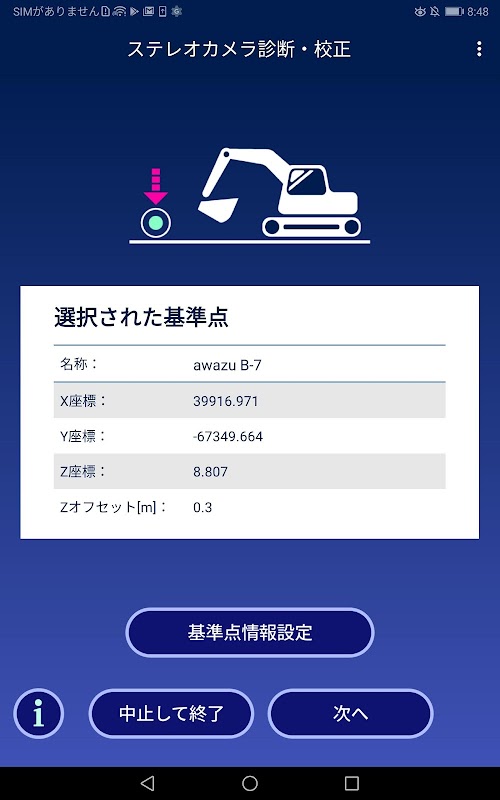 O estado da câmera estéreo "KomEye" pode ser diagnosticado através da comunicação com a escavadeira hidráulica Komatsu ICT (* 1) equipada com a câmera estéreo "KomEye" através deste aplicativo.