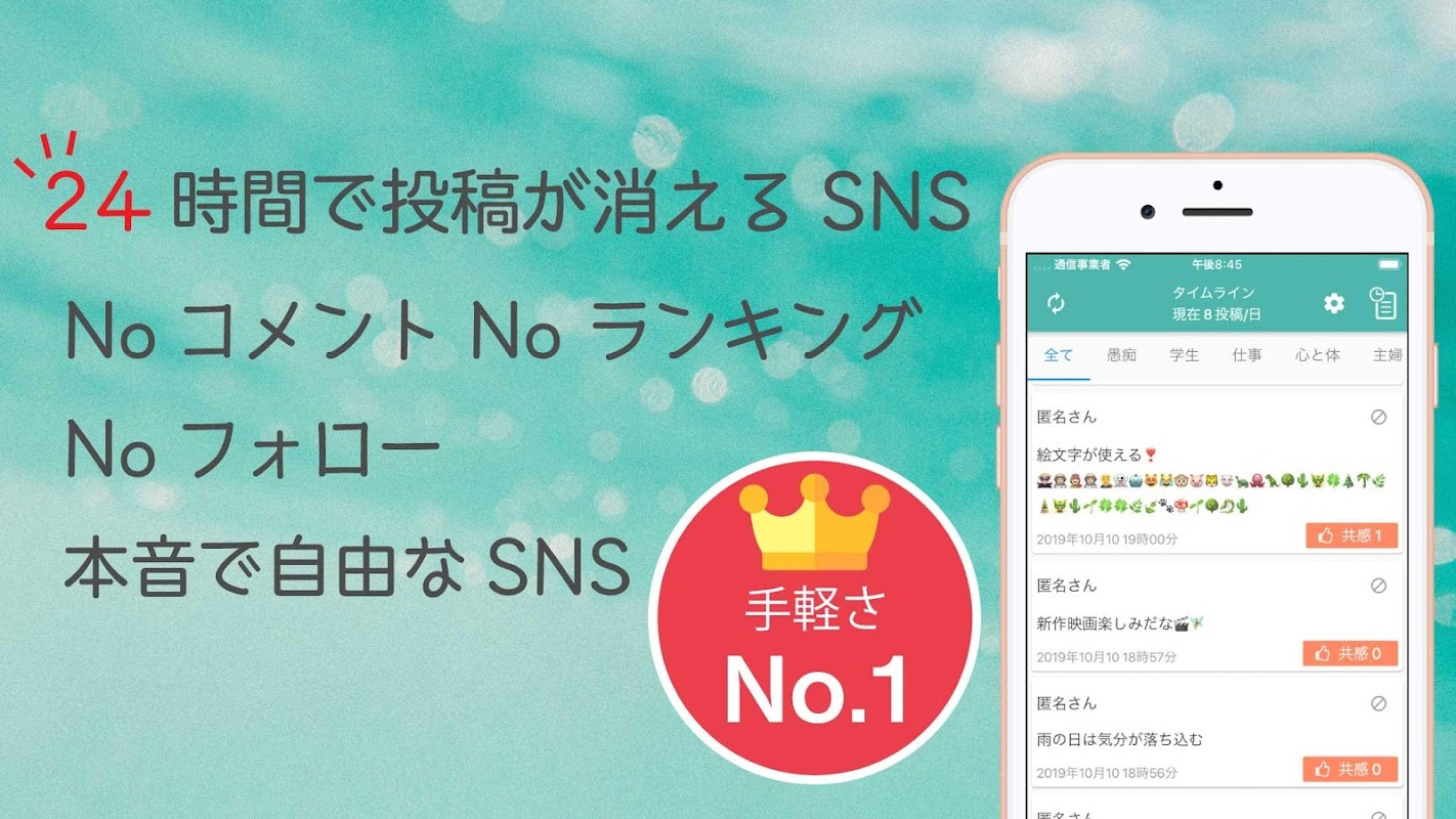 Libere seu estresse twittando seus verdadeiros sentimentos que você não pode contar a ninguém! Um aplicativo SNS de tweet onde as postagens desaparecem e não podem ser conectadas.