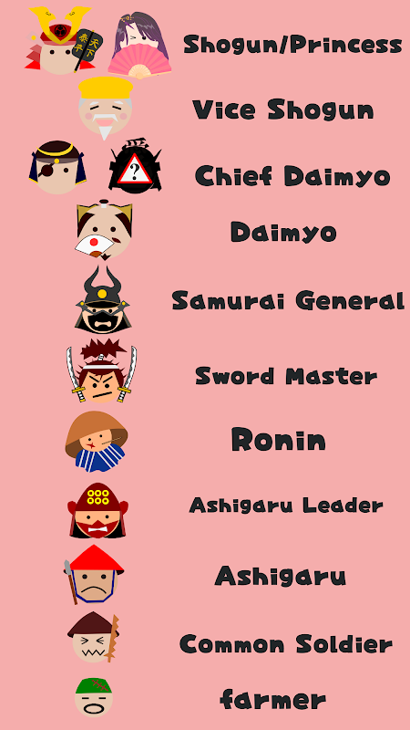 Pode se transformar em fazendeiro, soldado, ashigaru, cabeça de ashigaru ou ronin.