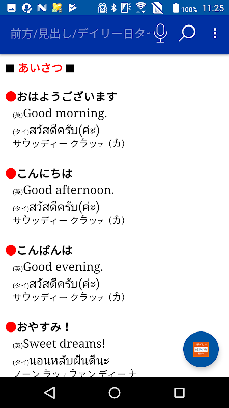 ・ Além de exemplos e expressões idiomáticas, os livros de conversação diária são gravados e as pronúncias em katakana são exibidas em tailandês e inglês.