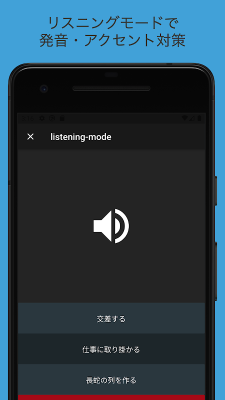 このアプリはドイツ語の「語彙力」「文法力」「リスニング力」を鍛えることを目的としています。4つの学習パターンを繰り返しこなすことで、1ヶ月の学習で1300以上の成句、慣用句、フレーズを覚えることが可能です。またネイティブ音声を採用しているため、ドイツ語検定のリスニングパートや Goethe Institut などの国際試験にも対応可能です。
