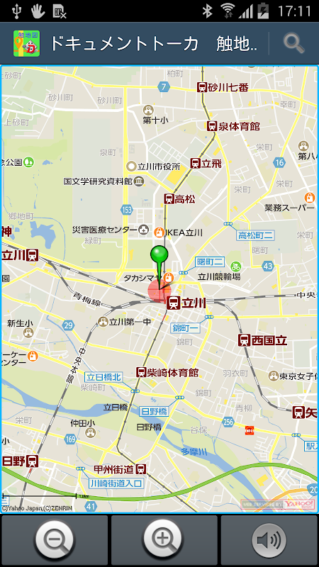 「ドキュメントトーカ 触地図」は、地図に表示されている地名や駅名、施設名などを、触れるだけで読み上げてくれるアプリです。
