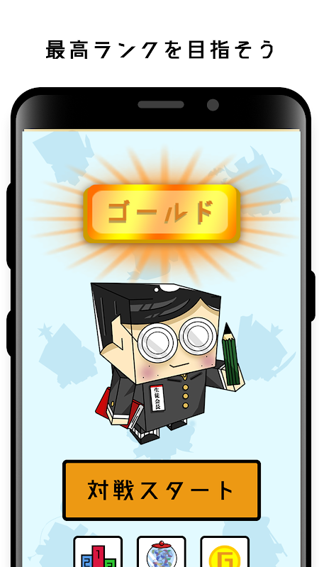 「ルーキー」から始まるランクはクイズに勝てばどんどんあがる。
