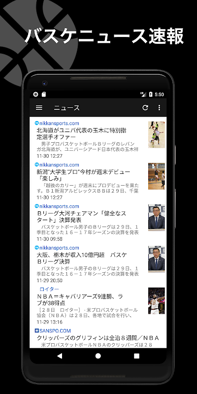 【バスケニュース速報】は、Bリーグ・NBAなど国内外のバスケニュース、バスケコラムなどをまとめて読める無料のニュースリーダーアプリです。