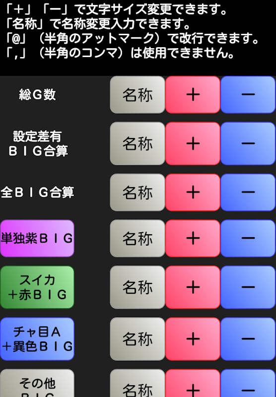 ⑬カウント項目名称文字サイズ変更可能