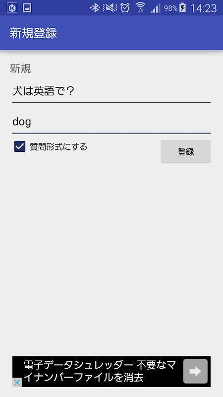 また質問形式で文章を登録すれば、暗記カードのように使えます。