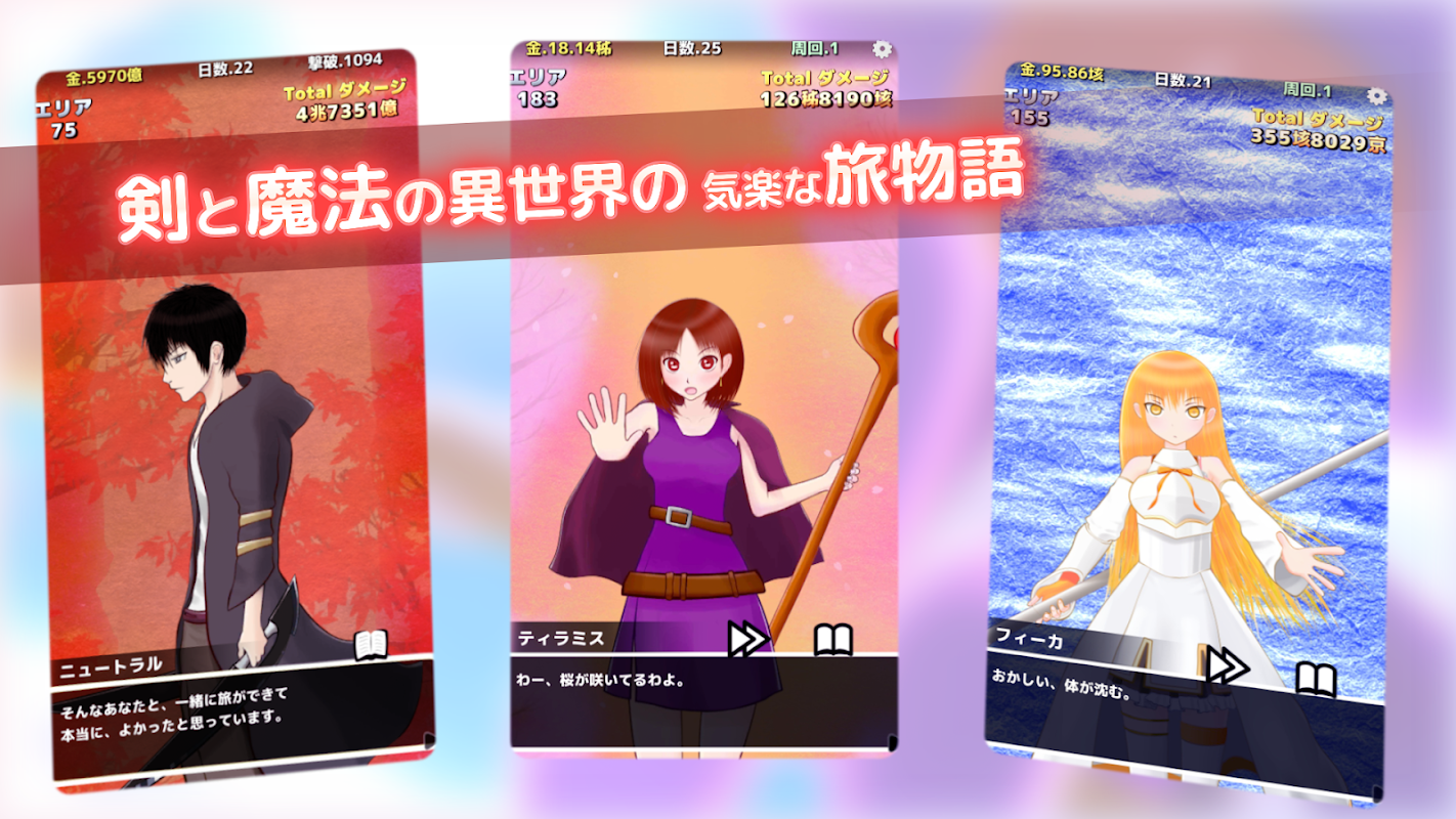 Um RPG que viaja livremente em um mundo diferente, uma espada e uma coisa mágica do dia a dia, um clicker + um aplicativo de jogo estilo light novel