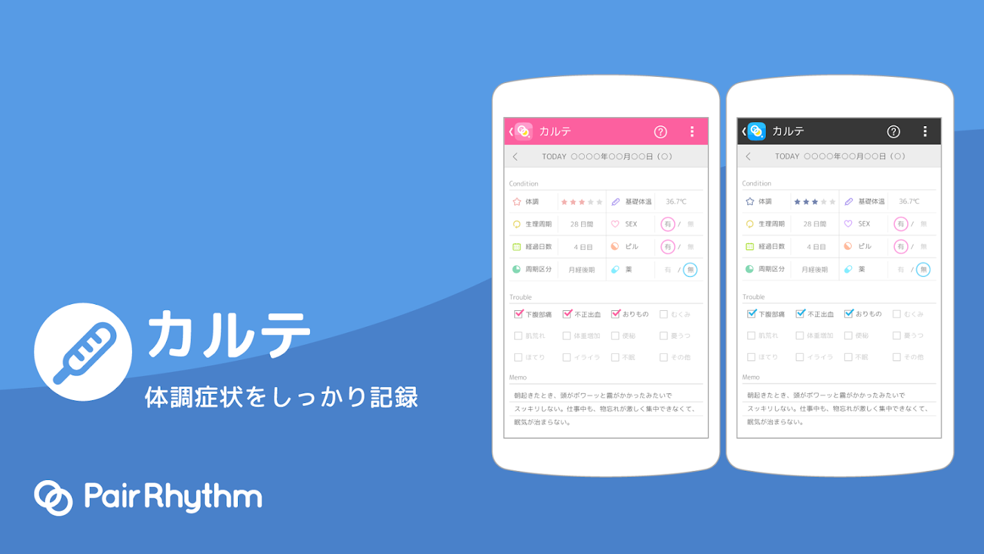 ペアリズムWは、女性のココロとカラダを支える【生理日予測アプリ】です。