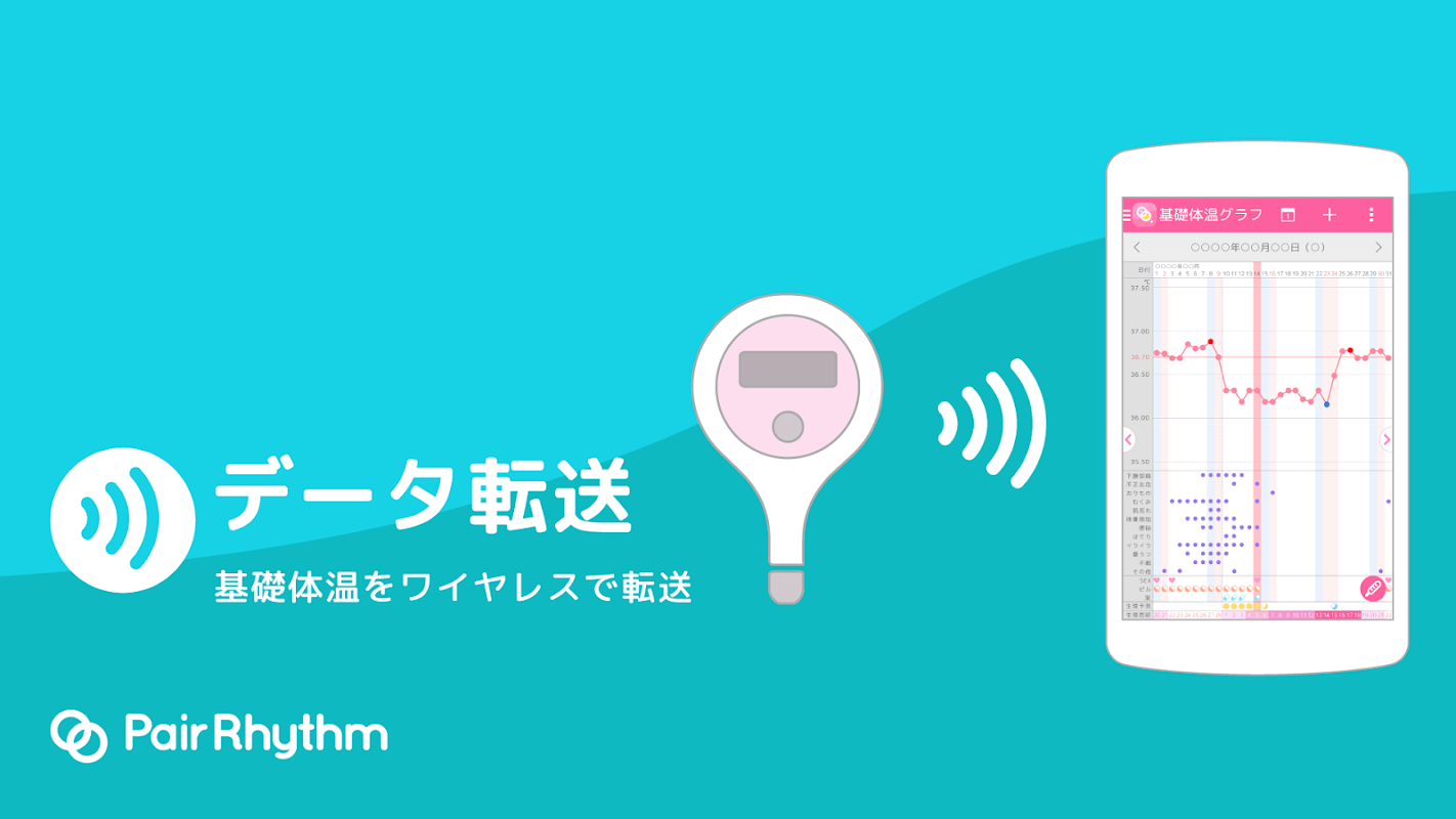 TDKの基礎体温計(HT-201)とのデータ連携に対応。最大7回分の計測データをワイヤレスでアプリへ転送することができます。