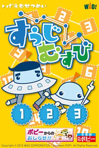 "Sujimusubi" é um aplicativo de números que colaborou com Zeniken Poppy e o aplicativo educacional "Wowchi!" Para concluir a imagem, toque os números em ordem.