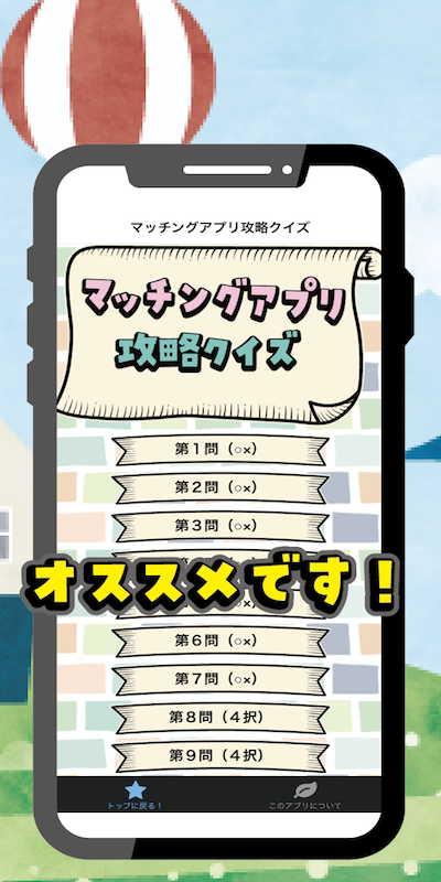 ◆出会い系アプリでなかなかマッチングできない男性必見のクイズアプリ◆