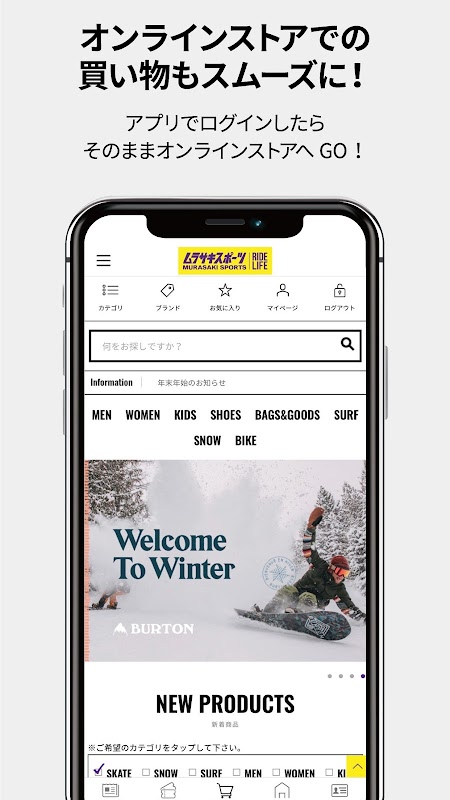 Faça login para acumular pontos (Murapo) ao comprar em cada loja gerenciada diretamente da Marasaki Sports Co., Ltd. e em lojas online.