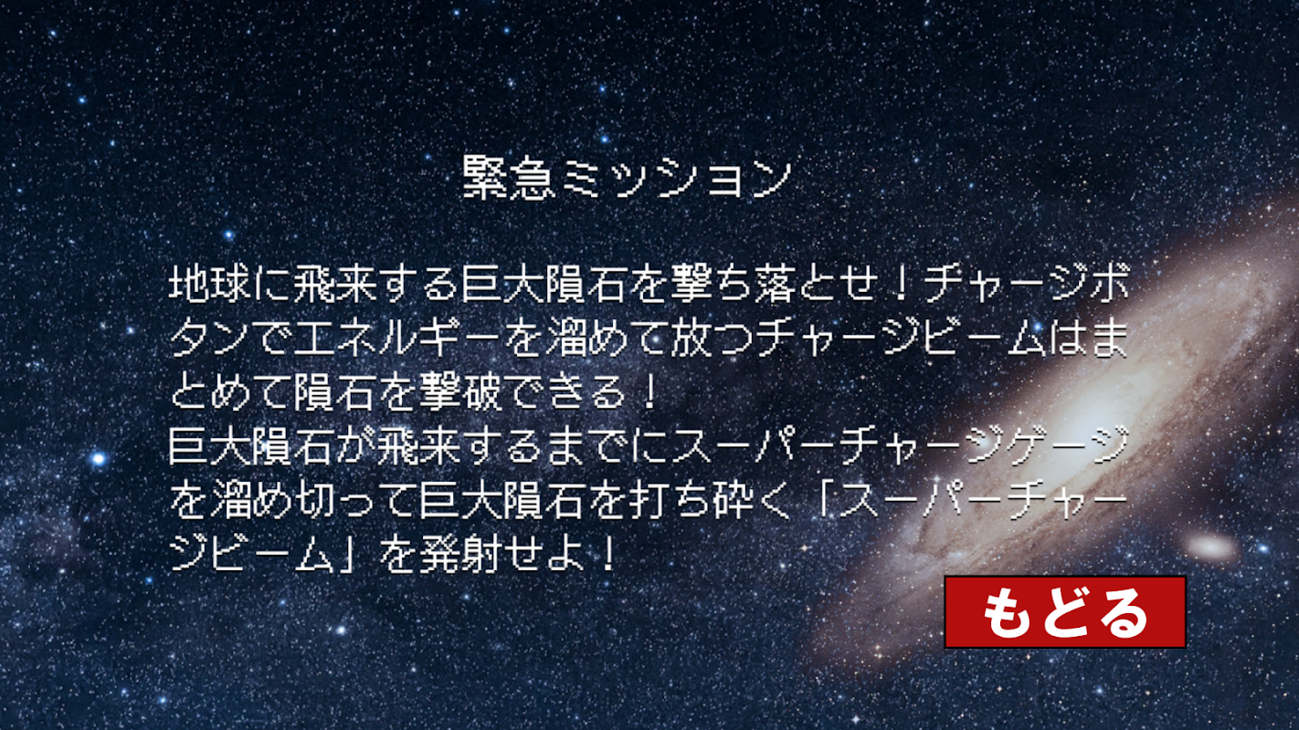 巨大隕石は、地球に到着するまでにスーパーチャージゲージを貯め切って破壊しよう!