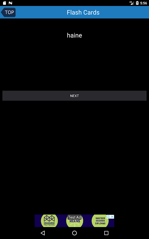 カテゴリを選ぶと単語もしくは会話文が出てきます。単語の下をタップすると答えが出てきます。