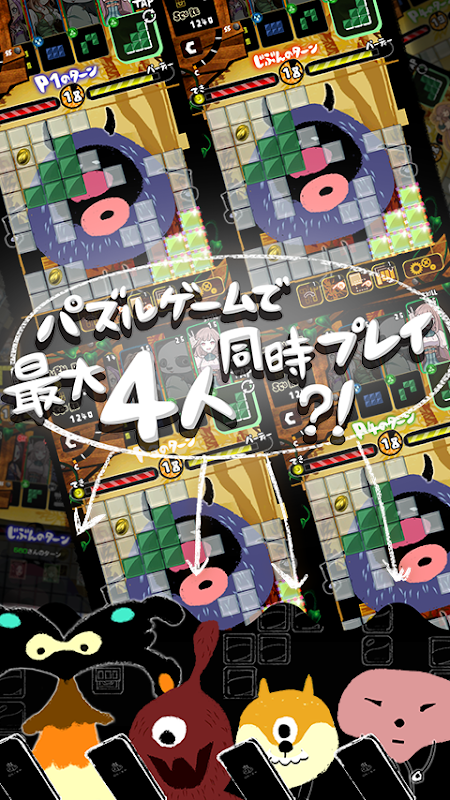◆最大4人同時プレイによる大型モンスター討伐戦もあり、みんなで盛り上がれます。4人同時プレイパズルゲームがどんなものか、是非体験してみてください。友達(一般人)誘って一緒に討伐しよう!