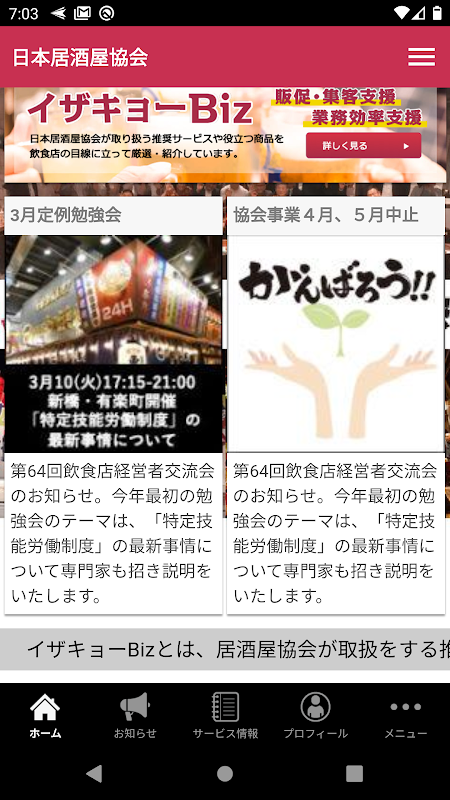 全てはお客様のために。居酒屋業界全体で考え、学び、実践することで業界全体の底上げに繋がる活動へ!『一般社団法人日本居酒屋協会』の公式アプリです。
