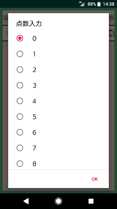 Toque na pontuação a ser pontuada e pressione "OK" para exibir a pontuação sob os botões de 1 a 5.