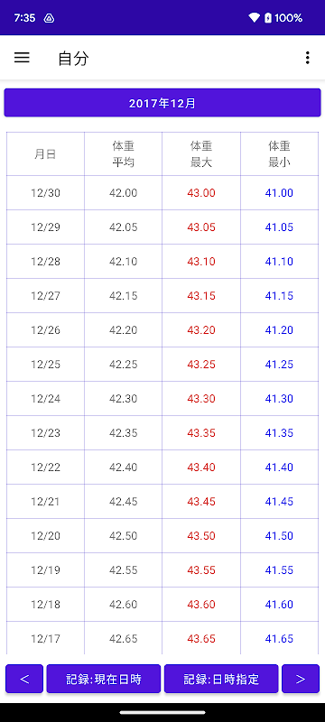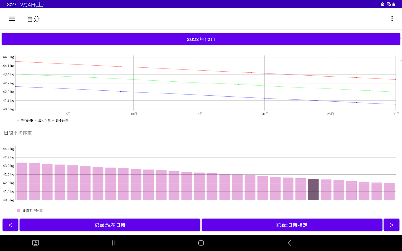 体重 体脂肪 記録帳 体重管理と体重グラフを表示します