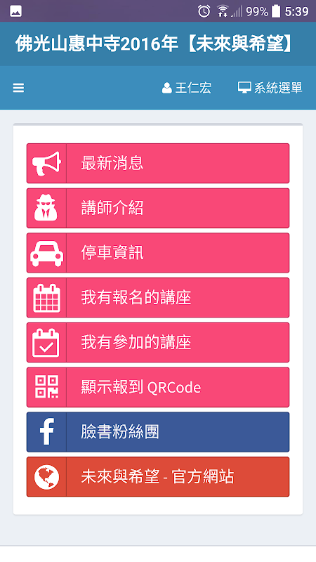 本APP由佛光山惠中寺建置,主要用於”未來與希望系列講座”使用,