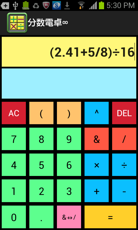 整数、分数、小数、指数の四則混合計算や括弧付き計算が出来る分数計算機です。