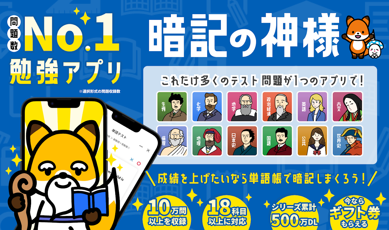 『暗記の神様』勉強アプリ〜効率よく暗記ができる単語帳アプリ!
