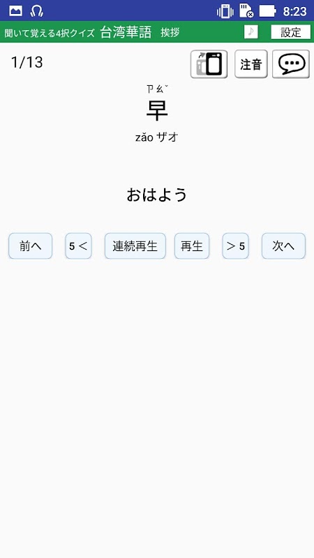 ☆全ての質問を台湾華語の音声で読み上げ、消音も可 ※クイズモード