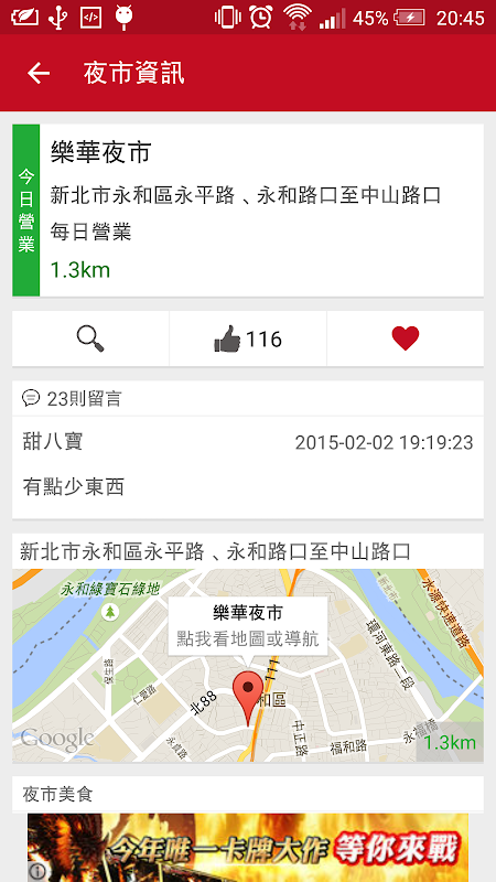 3. 地圖瀏覽直接標示出夜市位置,不用再翻一次地圖