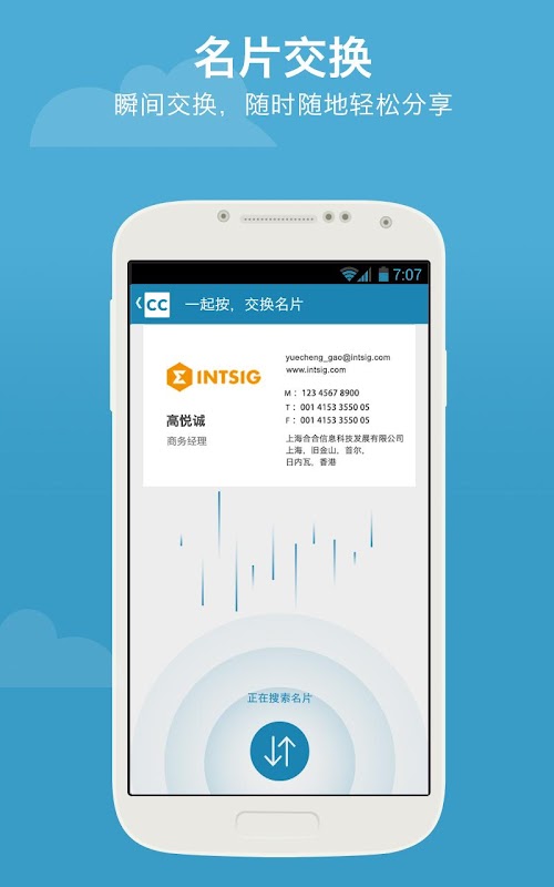 - 电子名片,随时交换不限量,忘带名片也不怕