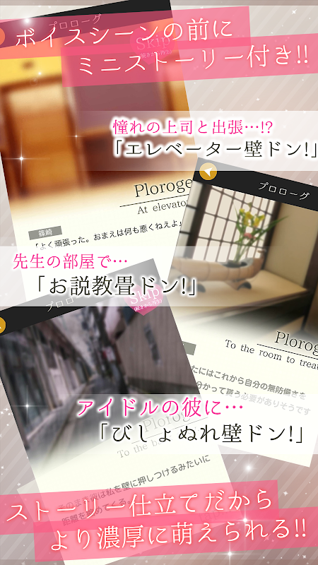 ◆[カレと壁際へ]をタップするとストーリーのプロローグを読むことができます。